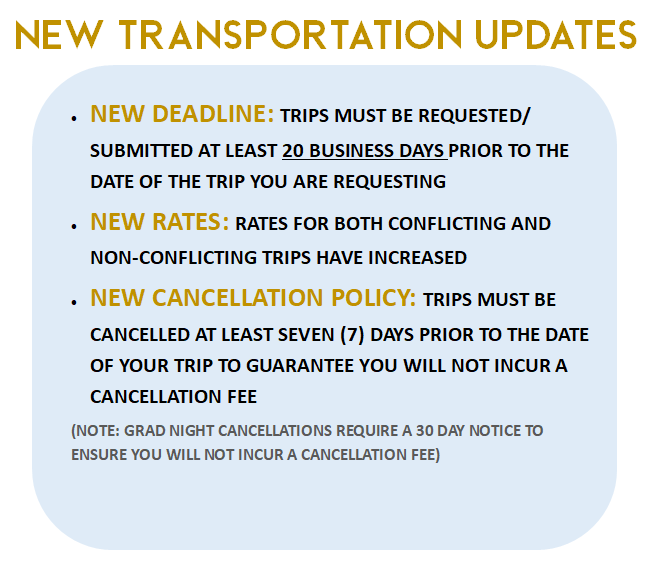 NOTE: NEW PROCEDURES REGARDING VANS EFFECTIVE JULY 2025. STARTING JULY 1, 2025 VANS CANNOT BE REQUESTED UNTIL STAFF MEMBERS ARE TRAINED IN ORDER TO ABIDE BY THE NEW LAWS THAT HAVE GONE INTO EFFECT.